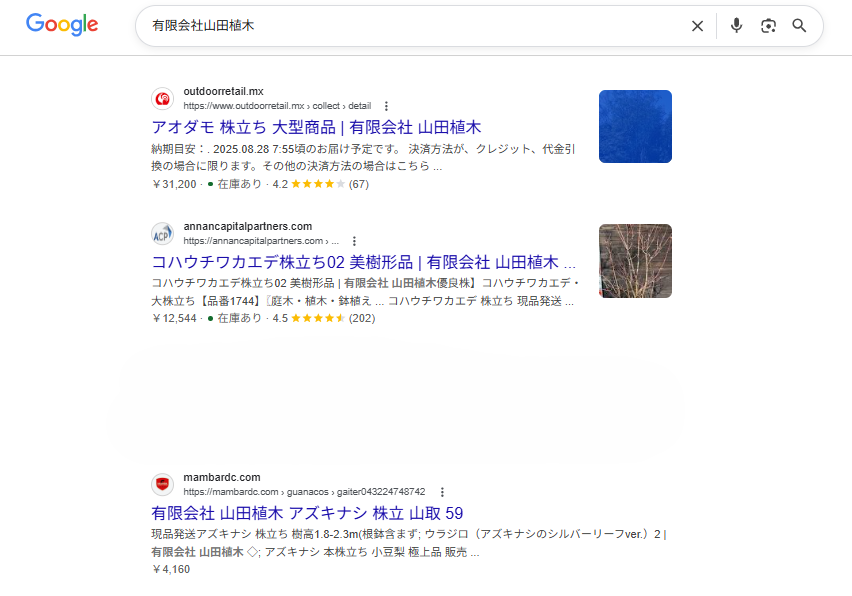 弊社の名前を騙り、植木の里・安行の老舗であるかのように装った**詐欺サイト(偽サイト)**が確認されました。 お客様が検索した際に、これらのサイトに誘導され、個人情報やクレジットカード情報を盗まれる被害が懸念されます。